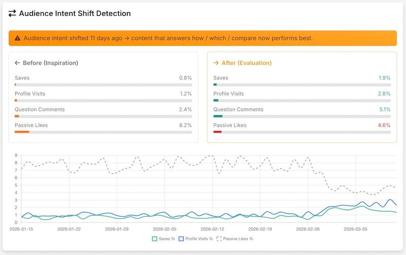 An audience moving from inspiration to evaluation often shows subtle behavioral signals across different platforms: